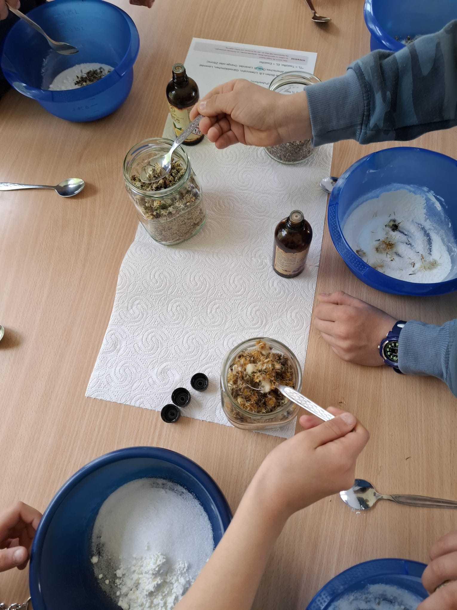 Impressionen Workshop Hort 23.-24.04.2025 Löwenzahn & Gänseblümchen kennenlernen Gänseblümchen Blüten erforschen Löwenzahn Blüten-Badebomben Blüten Limo herstellen Blüten-Limo zubereiten Blüten-Limo mit Löwenzahnhonig Badebombenherstellung Badebomben herstellen Dekorative Blüten-Gläser Blütengläser